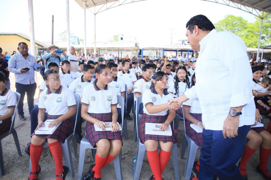 Desde la secundaria ‘Carlos A. Madrazo Becerra’ y acompañado por la secretaria de Educación, Patricia Iparrea Sánchez y el presidente municipal, Gaspar Trinidad Díaz Falcón; el mandatario estatal realizó la entrega de los dispositivos electrónicos con el propósito de dotar a los educandos de las herramientas tecnológicas necesarias para el adecuado desarrollo del proceso enseñanza – aprendizaje, preparándolos con ello para enfrentar un mundo cada vez más interconectado.