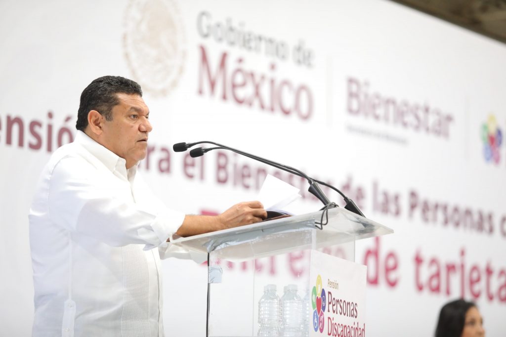 Desde la Nave 3 del Parque Tabasco, Montiel Reyes destacó el esfuerzo del mandatario estatal para lograr que este beneficio llegue al 100 por ciento de quienes forman parte de esta población vulnerable.