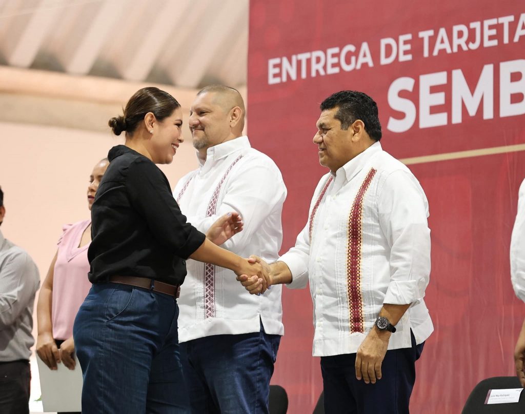 La secretaria de Bienestar, Mayra Paloma López Hidalgo, destacó que más que una tarjeta bancaria, cada uno de las y los beneficiarios recibe el respaldo del Gobierno del Pueblo, “también reciben una invitación para trabajar, organizarse, compartir saberes y convertirse en agentes de cambio desde su comunidad”.