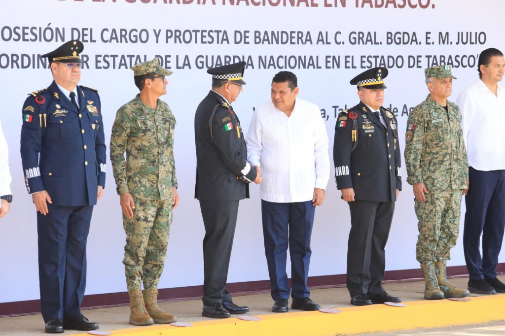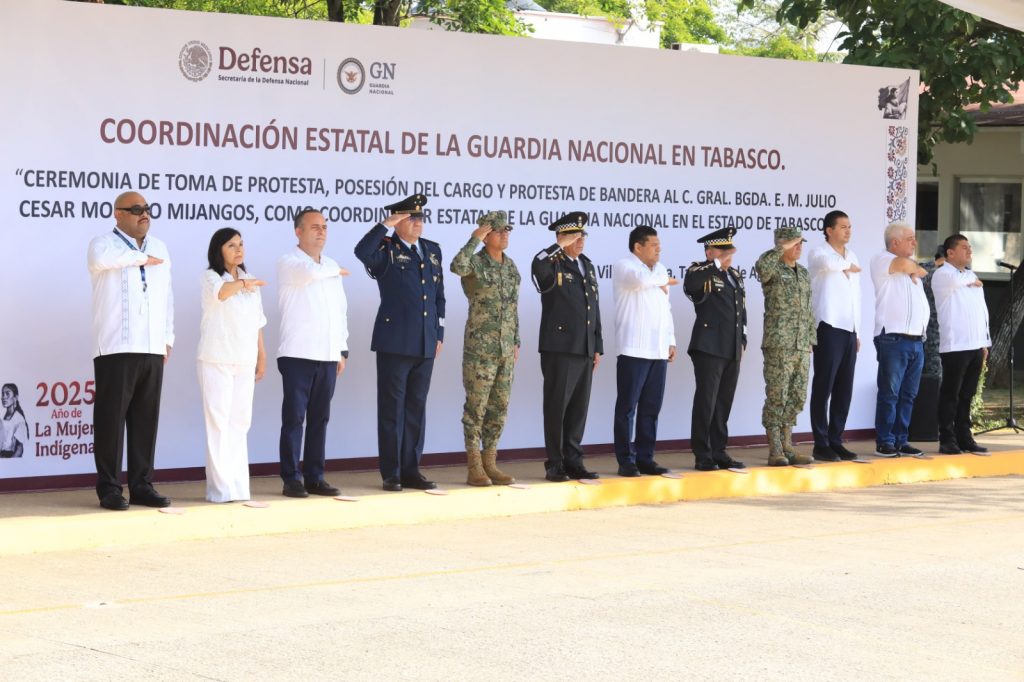 Desde las instalaciones de dicha corporación en la ciudad de Villahermosa y por disposición de la Presidenta de México y comandanta Suprema de las Fuerzas Armadas, Claudia Sheinbaum Pardo, el mandatario estatal atestiguó la toma de protesta realizada por el coordinador territorial de la GN Región Golfo, Ignacio Murillo Rodríguez y en presencia de integrantes de la Mesa para la Construcción de Paz y Seguridad.