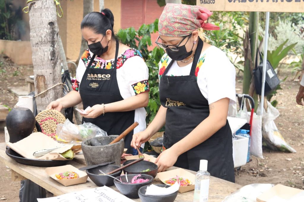 En la explanada del Centro de Investigación de las Culturas Olmeca y Maya, las y los cocineros comparten con el público recetas heredadas de generación en generación, esas que se cuecen a fuego lento en cazuelas de barro y hornos improvisados, pero que llevan consigo el verdadero sazón tabasqueño y se dan cita desde las 11 de la mañana para preparar platillos emblemáticos para el disfrute de las y los tabasqueños.