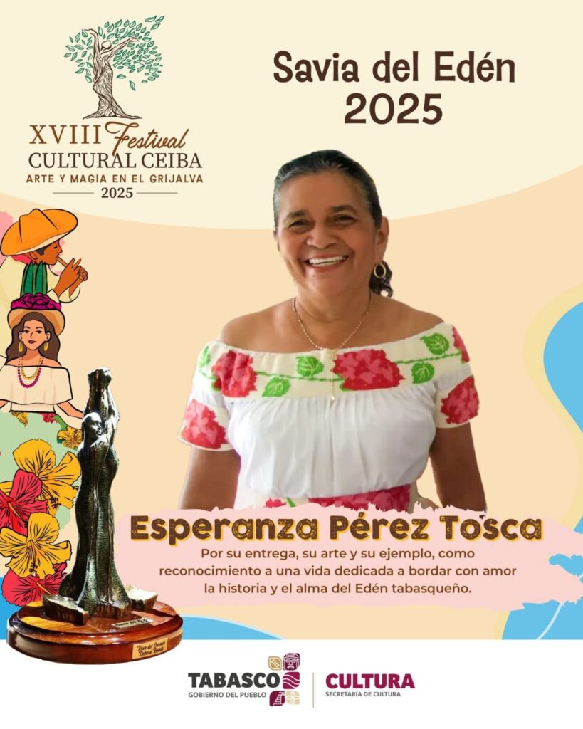 Detalló que el próximo viernes 17, a partir de las 8 de la noche, el Foro Grijalva ubicado en Plaza de Armas, será el escenario donde el Gobernador Javier May Rodríguez inaugurará la fiesta cultural de Tabasco, en cuyo marco hará entrega de la Savia del Edén a Doña Esperancita Pérez Tosca, por su impulso y rescate de las tiras bordadas a Punto de Lomillo y a Roger Suárez Vélez, el Guardián de la Danza del Pochó de Tenosique. En esa misma noche, el publico asistente disfrutará del espectacular concierto de Reyli Barba.