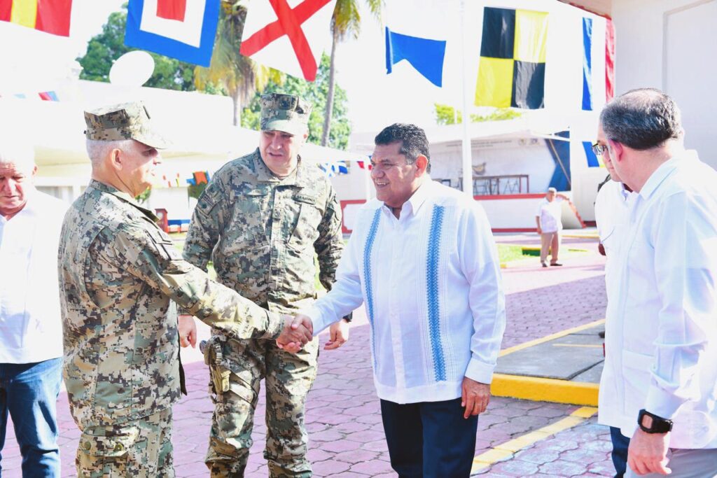 El gobernador Javier May Rodríguez atestiguó la ceremonia de entrega-recepción del Mando de Armas de la Quinta Zona Naval, donde asumió el cargo el vicealmirante Rogelio Bello Aguilar, en sustitución de José Méndez Vázquez, quién causó alta como jefe de la Unidad de Capitanías de Puerto y Asuntos Marítimos de la Secretaría de Marina.