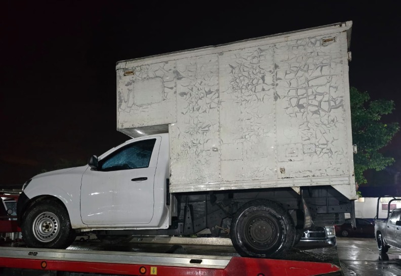 La droga y el equipo eran transportados en una camioneta marca Nissan tipo NP-300, de color blanco, la cual no portaba placas de circulación y, tras su verificación, se confirmó que contaba con reporte de robo.
