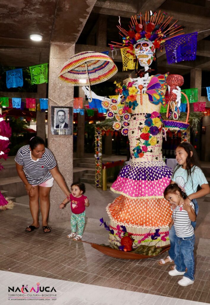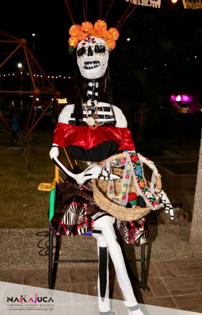 En el marco de las celebraciones por el Día de Muertos, el H. Ayuntamiento de Nacajuca realizó la noche de este miércoles el Festival Cultural “Entre Flores e Inciensos” y el Primer Concurso de Catrinas Monumentales, eventos que reunieron a familias, artistas locales y visitantes en un ambiente festivo lleno de color, tradición y creatividad.
