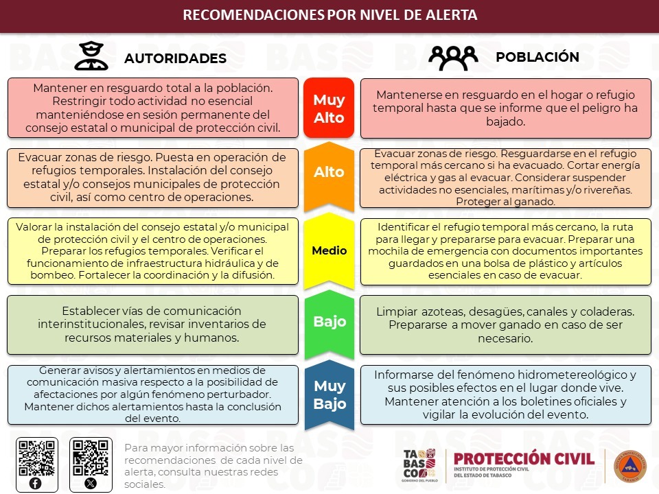 El Sistema Estatal de Protección Civil se mantiene en constante monitoreo y coordinación con las autoridades federales, estatales y municipales para la atención oportuna de cualquier emergencia derivada de este fenómeno.