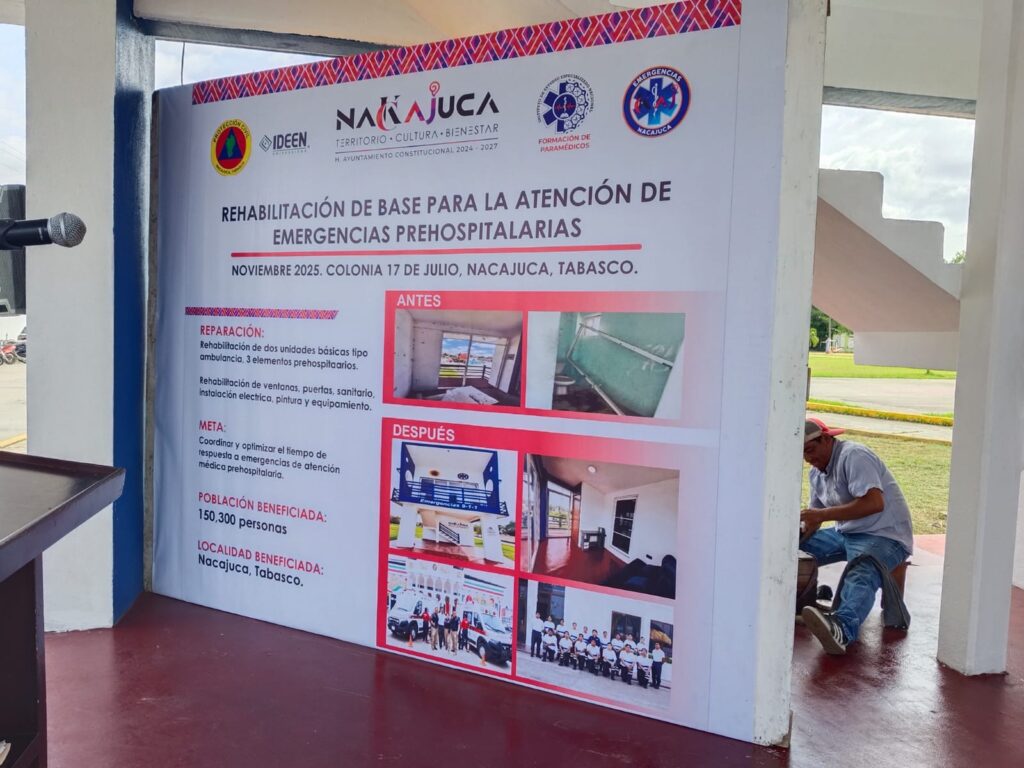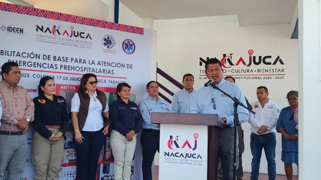El presidente municipal Roberto Ocaña Leyva y la presidenta del DIF Nacajuca, Verónica Alejandra Ramírez Sánchez, encabezaron la reinauguración de la base de atención de emergencias prehospitalarias en la colonia 17 de Julio, infraestructura clave para mejorar la respuesta ante urgencias médicas en la zona.