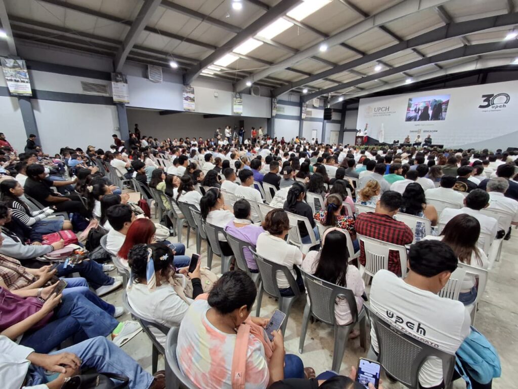 Al asistir como invitado al Primer Informe de Actividades del rector de la casa de estudios, José Luis de la Cruz Córdoba, el mandatario celebró el fortaleciendo que se lleva a cabo a la infraestructura y equipamiento de la UPCH, lo cual se traduce en espacios con mejores condiciones para que las juventudes accedan a una educación de calidad, por ello, desde el Gobierno del Pueblo se asume con convicción, la importancia de una educación superior de excelencia, con una visión humanista para el desarrollo del Estado, enfatizó.