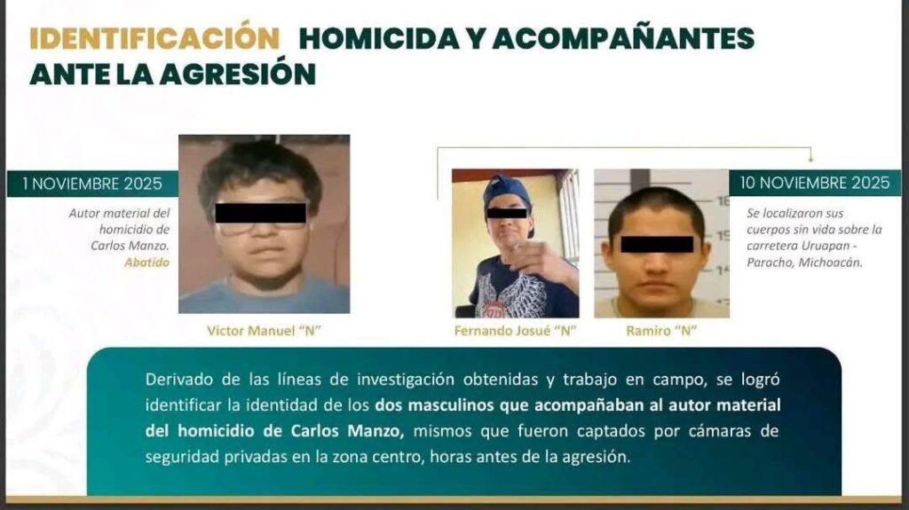 El gobernador de Michoacán, Alfredo Ramírez Bedolla, informó que además de estas detenciones, se localizaron sin vida a dos presuntos cómplices en la región de Capácuaro, lo que amplía las líneas de investigación y mantiene la atención pública sobre uno de los hechos más violentos registrados en la entidad Eje Central.