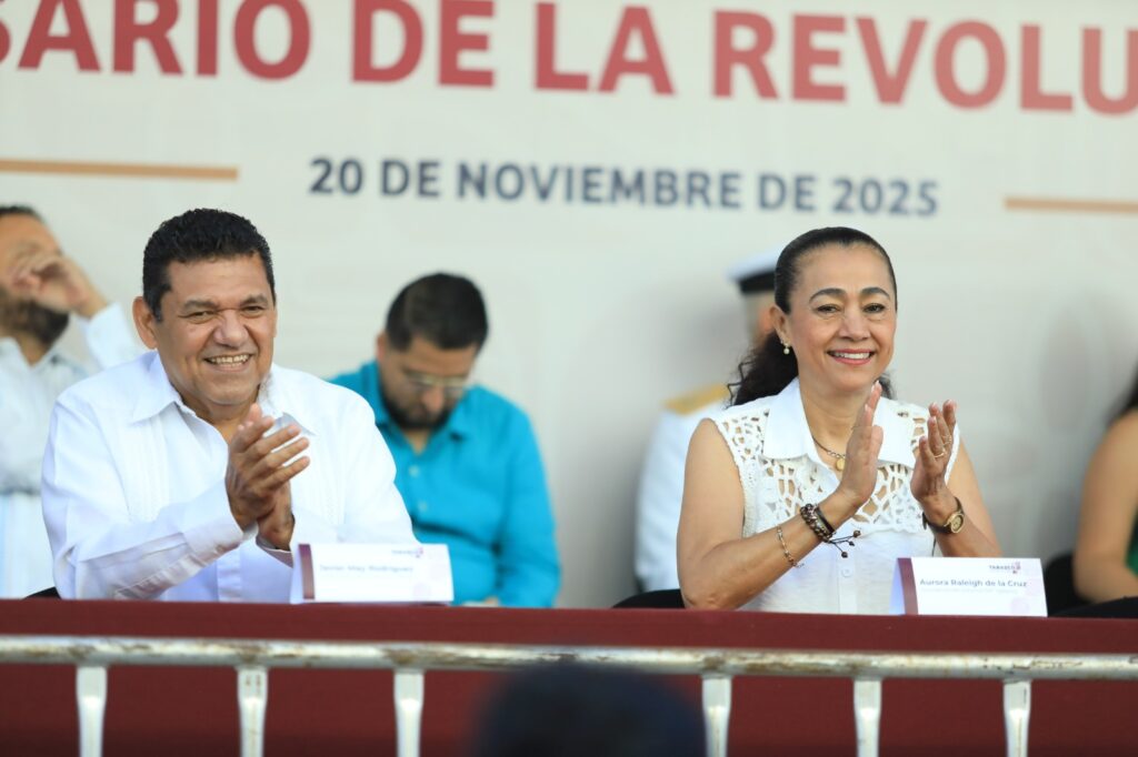 En un marco de diversión, alegría, júbilo y patriotismo, el Gobernador Javier May Rodríguez presenció el Desfile Deportivo, Cívico y Militar en conmemoración del 115 aniversario de la Revolución Mexicana, en el que participaron 815 elementos de fuerzas federales y estatales, 2 mil 700 alumnos, 660 deportistas, 566 servidores públicos y 154 charros.