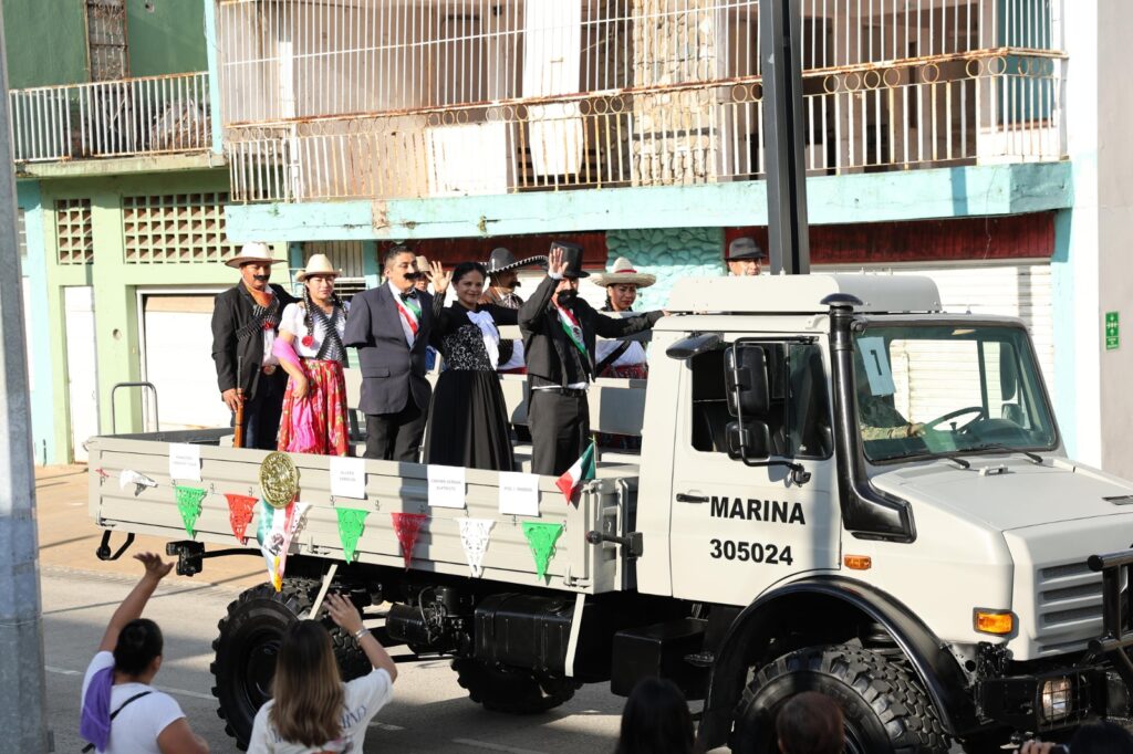 El desfile fue encabezado por elementos de la Defensa, del 37º Batallón de Infantería, de la Guardia Nacional y de la Quinta Región Naval de la Secretaría de Marina, quienes, con orgullo y gallardía, mostraron parte del equipo con que cuentan y presentaron algunas de las acciones que realizan en apoyo a la población.