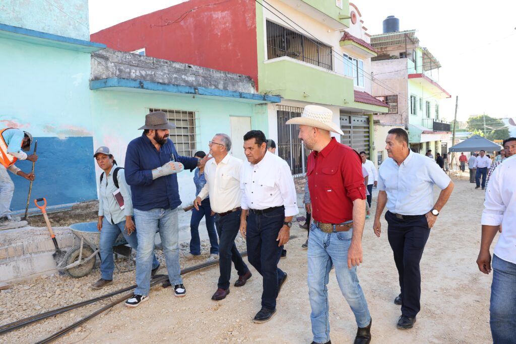 Como parte de la amplia agenda de actividades en el municipio fronterizo, Javier May supervisó los trabajos de construcción de pavimentación con concreto hidráulico, guarniciones, banquetas y la rehabilitación de red de agua potable y drenaje en la calle 39 en la colonia San Miguelito.