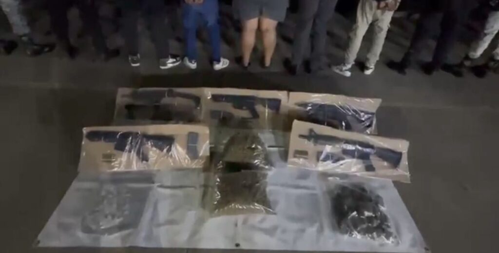 Como parte de esta acción, las autoridades aseguraron armas largas, una pistola tipo UZI, distintas dosis de marihuana y cristal, así como cartuchos útiles. También fue recuperado un vehículo con reporte de robo.
