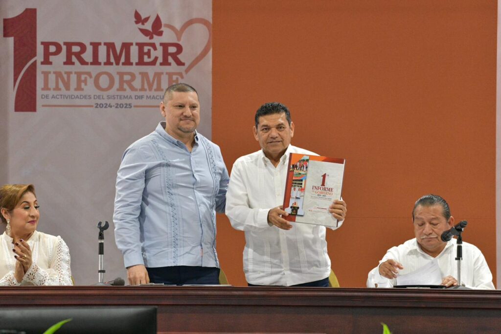 El Gobernador Javier May Rodríguez acompañó al presidente municipal de Macuspana, Gaspar Trinidad Díaz Falcón, en la presentación del Primer Informe de Gobierno 2024-2025, en cuyo marco se destacó que mediante el trabajo coordinado del estado, federación y municipio este año se invirtieron más de 215 millones de pesos en 152 obras que transforman la vida de las familias macuspanenses.