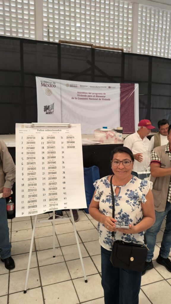 La delegada estatal de Programas el Bienestar, Lorena Mendez Denis, encabezó este martes el sorteo de las 2 mil 340 Viviendas del Programa Nacional de Vivienda para el Bienestar, estrategia dirigida a personas que no son derechohabientes del Infonavit ni del Fovissste, con la finalidad de garantizar el acceso a un hogar digno en familias de menores ingresos.