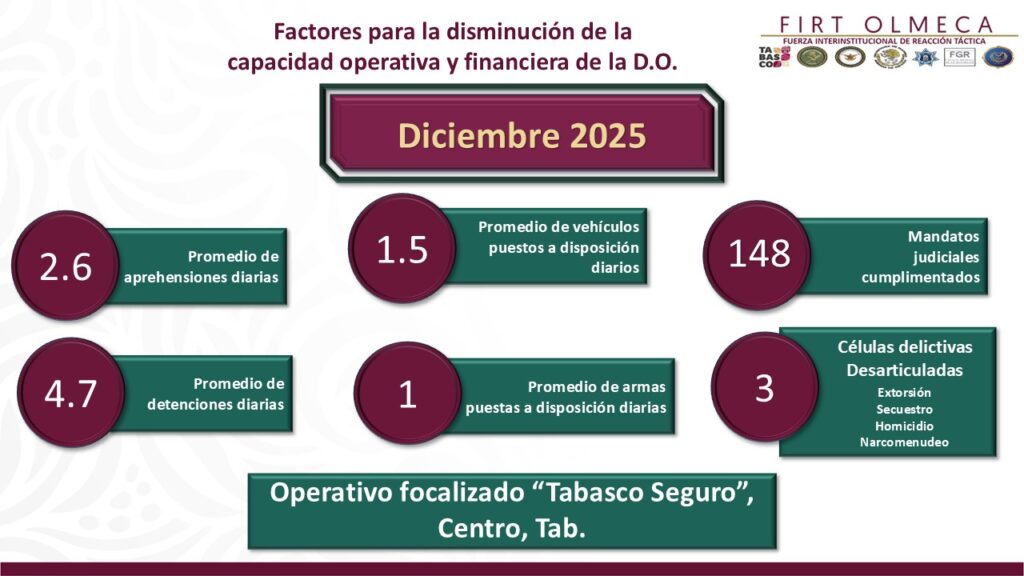 Durante el 2025 en Tabasco se logró la aprehensión de 105 generadores de violencia, de estos 27 eran considerados como prioritarios informó Jesús Amaya Guerrero Comisionado de la Policía Estatal de Tabasco.