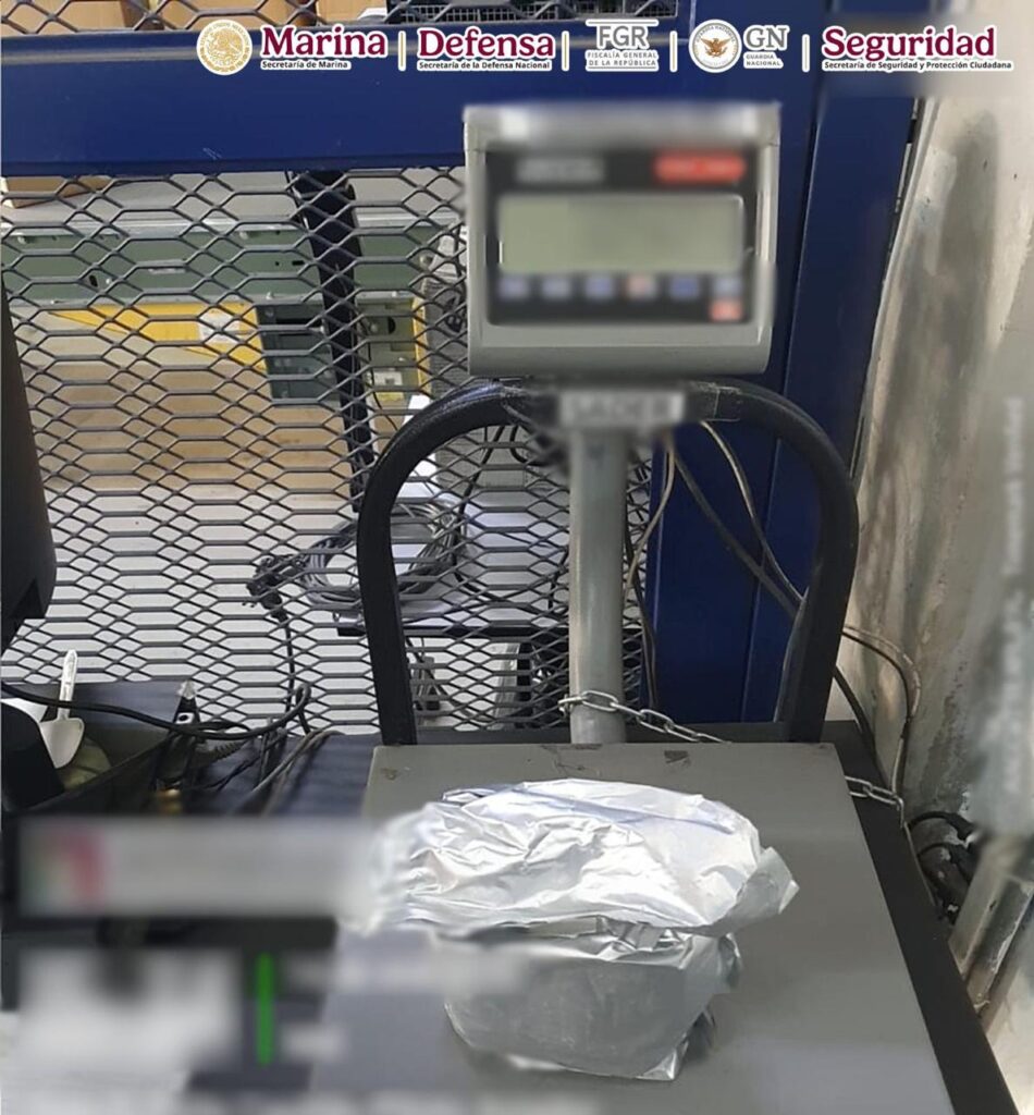 Como parte de las acciones para impedir el ingreso de sustancias ilícitas y mantener el Estado de derecho, en el Aeropuerto Internacional de la Ciudad de México (AICM), elementos de la Secretaría de Marina (Semar) a través de la Armada de México, Secretaría de Seguridad y Protección Ciudadana (SSPC), Fiscalía General de la República (FGR), Secretaría de la Defensa Nacional (Defensa), Guardia Nacional (GN), junto con personal de Aduanas, aseguraron un paquete con aproximadamente un kilo de fentanilo.