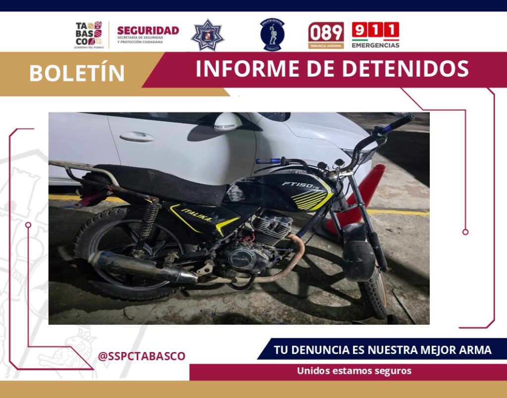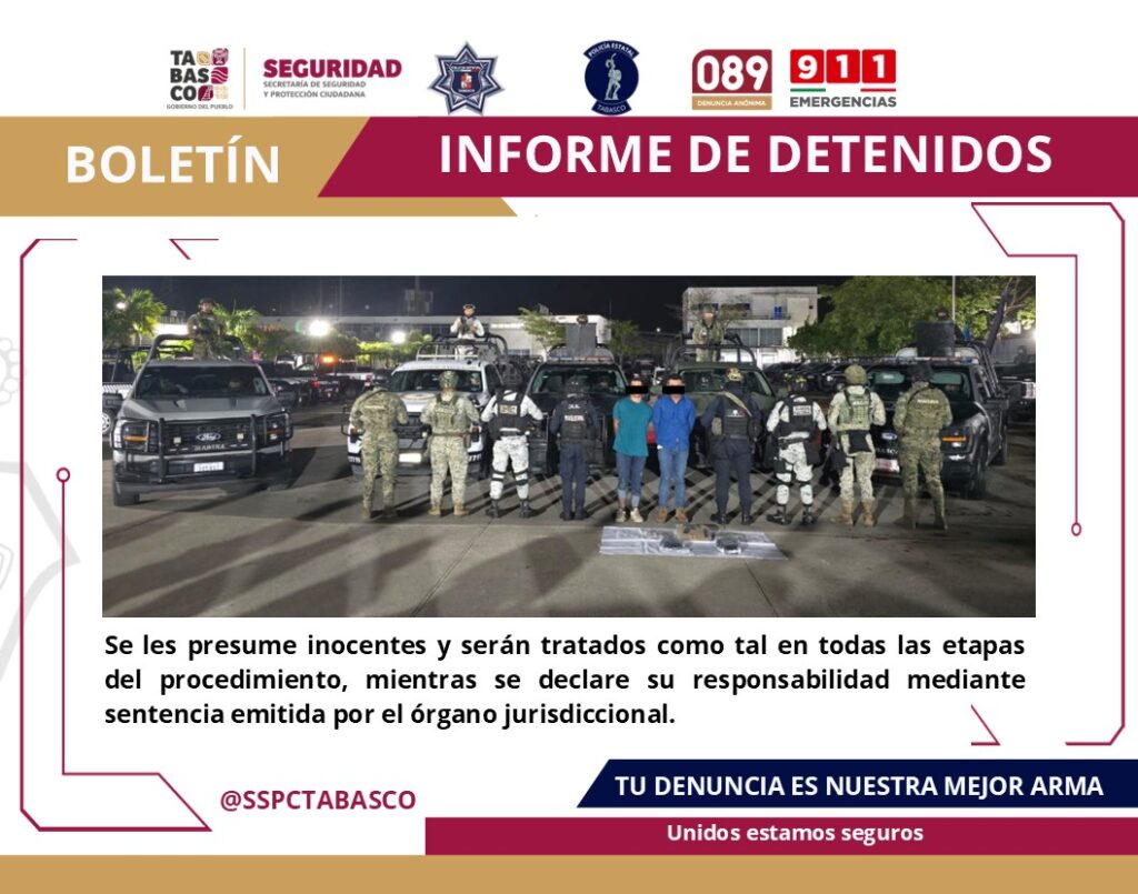 La SSPC reafirma su compromiso de continuar fortaleciendo las acciones de prevención y combate a los delitos en el Estado, para garantizar la seguridad de las familias tabasqueñas.