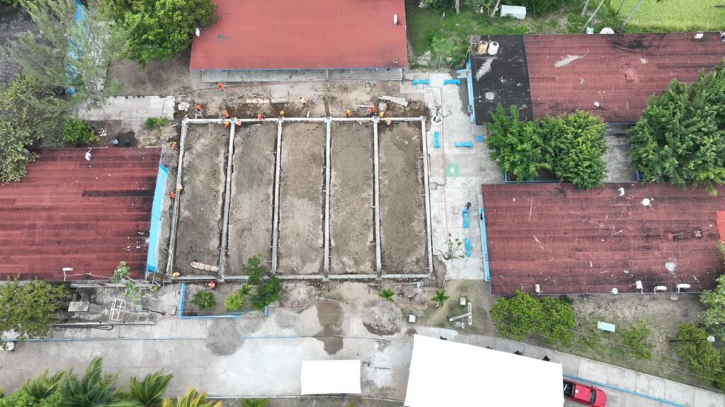 El secretario de Ordenamiento Territorial y Obras Públicas, Daniel Casasús Ruz, explicó que la nueva cancha se desarrolla bajo un proceso constructivo que atiende las particularidades del terreno, dado que se encuentra en una zona muy cercana a cuerpos de agua, por lo que el nivel friático es “prácticamente superficial”.