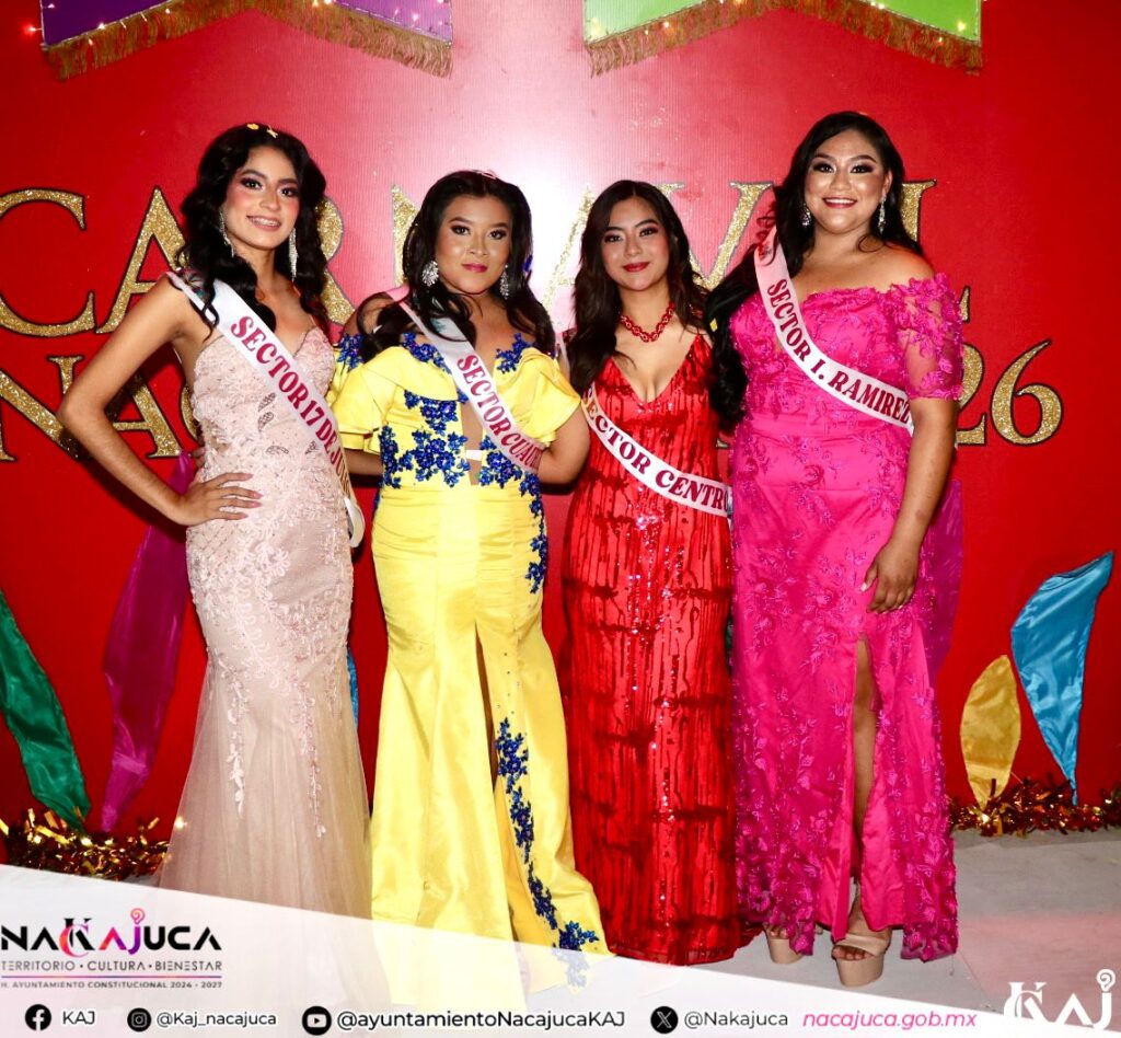 Las aspirantes a Reina del Carnaval Nacajuca 2026 son Fátima del Carmen Rodríguez Hernández (Centro), Karla de Jesús Rosaslanda Ramón (17 de Julio), Estrella del Milagro Jiménez Márquez (Cuauhtémoc) y Lizbeth del Carmen Poot Jiménez (Ignacio Ramírez).