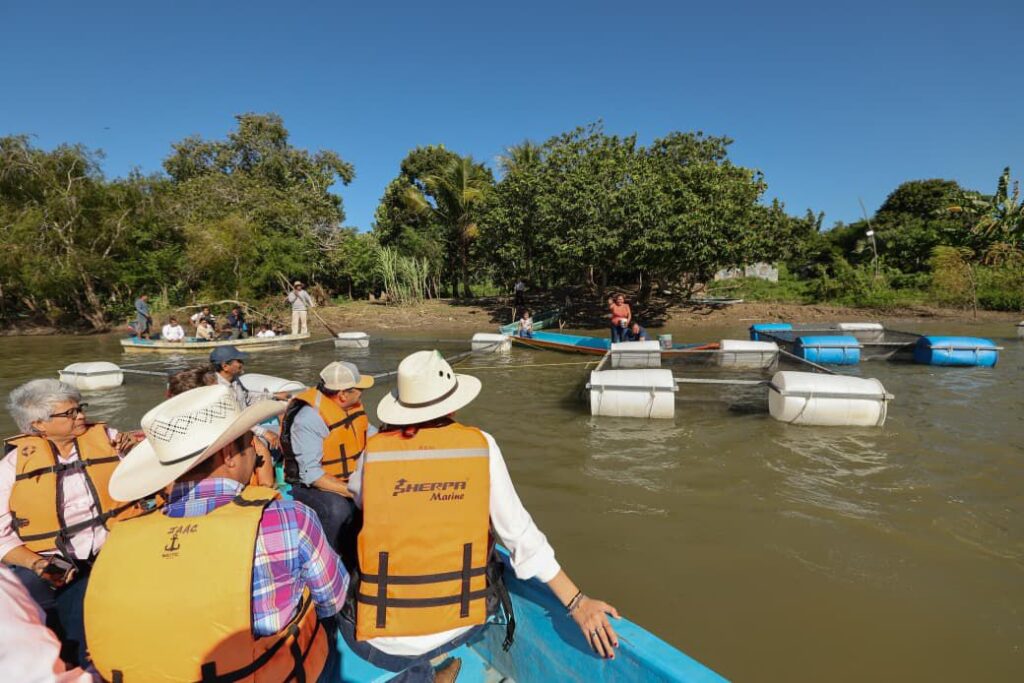 Tras un recorrido en lancha por áreas del río Usumacinta donde están ubicadas las jaulas flotantes de reproducción de peces, adelantó que próximamente quedará listo el primer laboratorio de reproducción de alevines, el cual permitirá posicionar a Tabasco como “el centro de reproducción más grande del país” y al mismo tiempo fortalecerá la operatividad de la estrategia, ya que dotará de forma gratuita a las y los pescadores de crías de una calidad genética altamente resistente a las altas temperaturas.