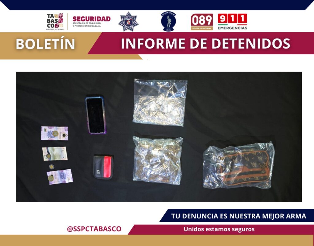 Autoridades de seguridad en Tabasco capturaron a un hombre señalado por un presunto delito contra la Ley General de Salud, como parte de las acciones del Plan de Contención del Delito y la Estrategia Antiextorsión.