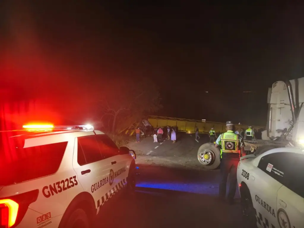 Al lugar acudieron elementos de la Guardia Nacional, División Carreteras, quienes brindaron auxilio inicial al conductor del tráiler, que resultó lesionado tras el choque, y apoyaron en las labores para garantizar su atención médica.