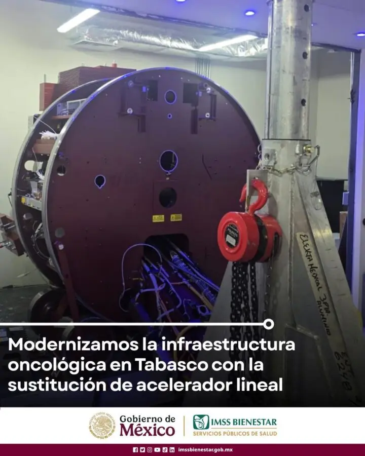 El IMSS Bienestar inició la instalación de un nuevo acelerador lineal en el Hospital Regional de Alta Especialidad “Dr. Juan Graham Casasús”, en Villahermosa, como parte del fortalecimiento de la infraestructura oncológica en el sureste del país.