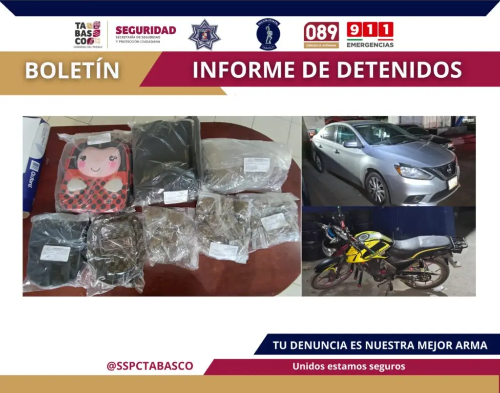 Como parte de las acciones de seguridad implementadas en la Estrategia Antiextorsión y el Plan de Contención del Delito, la Secretaría de Seguridad y Protección Ciudadana (SSPC), en coordinación con la Fuerza Interinstitucional de Reacción Táctica (FIRT) Olmeca, logró el aseguramiento de tres masculinos, presuntos culpables de delitos contra la Ley General de Salud.