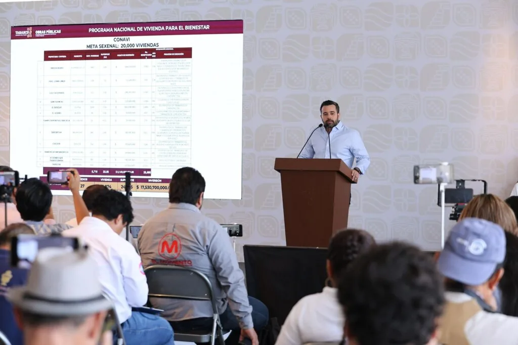 Priego Rodríguez señaló que, en coordinación con la federación, se impulsa el Programa Nacional de Vivienda para el Bienestar, a través del cual se desarrollan 13 conjuntos habitacionales por parte del INFONAVIT en los municipios de Centro, Comalcalco, Huimanguillo, Macuspana, Teapa, y Cunduacán.
