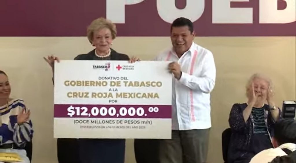 Dona gobierno de Tabasco 12 MDP a la Cruz Roja Mexicana