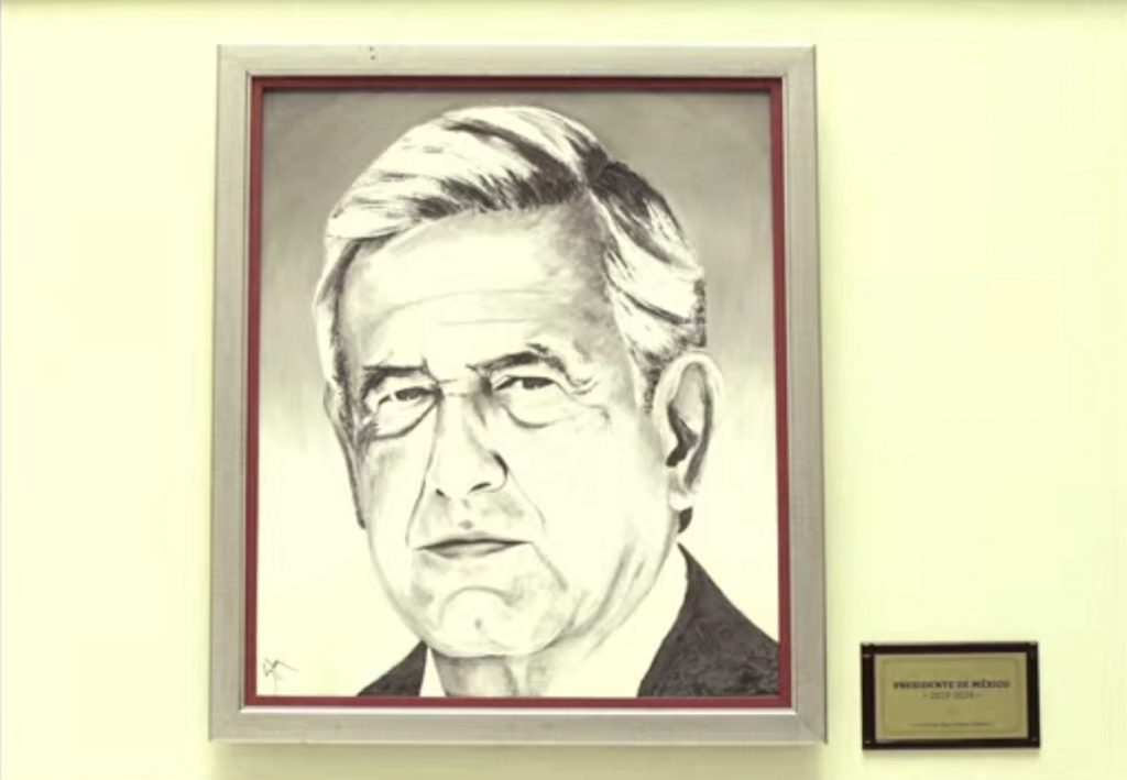 Rinden homenaje a AMLO con retrato en su honor en Palacio de Gobierno