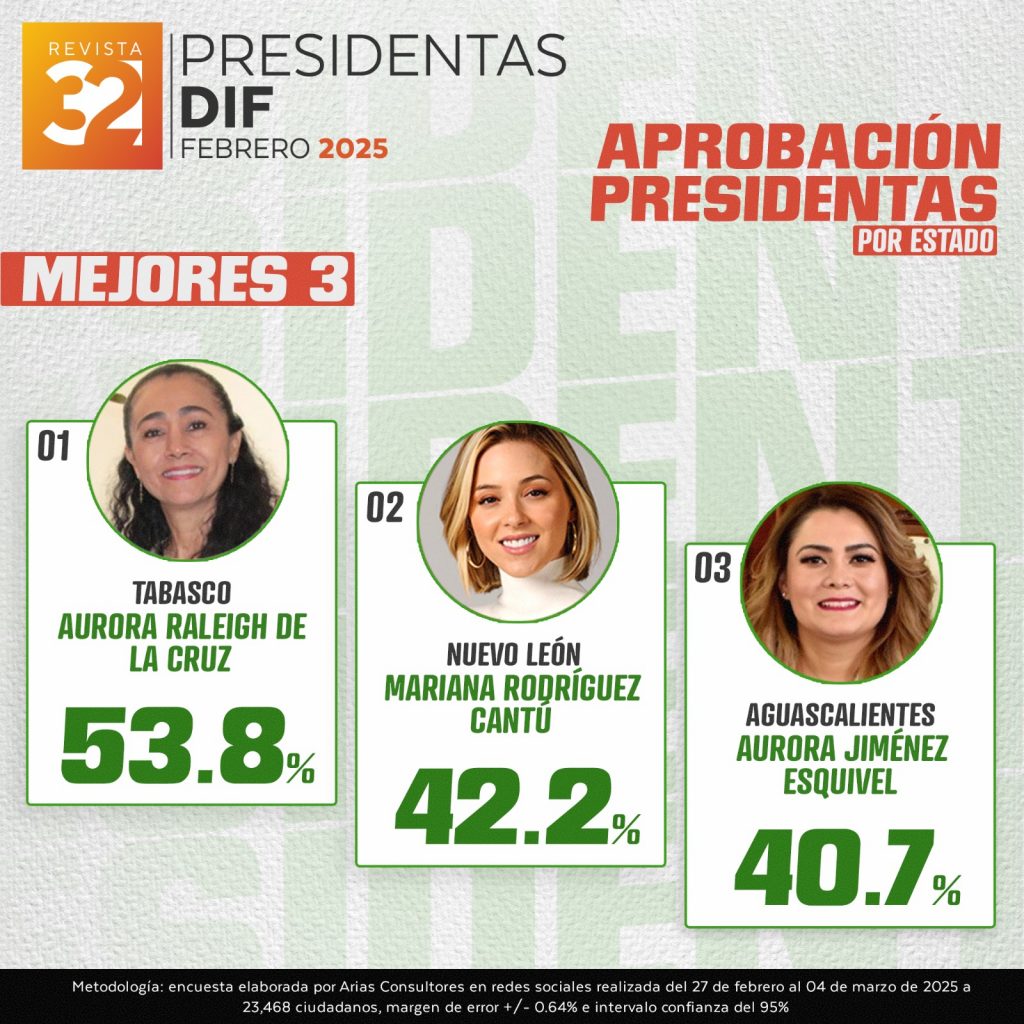 SARA AMADOR VERA/EL EDÉN MX Aurora Raleigh de la Cruz, presidenta del Patronato DIF Tabasco fue la mejor evaluada por los ciudadanos en una encuesta de percepción ciudadana respecto al desempeño de las presidencias de los sistemas DIF estatales en las 32 entidades del país. Las cinco presidencias del DIF estatal mejor evaluadas en la […]