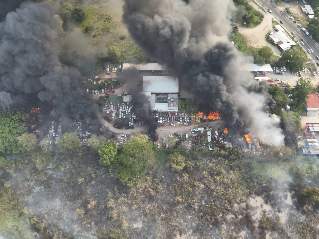 Quemadas mas de cien unidades por incendio en retén de Grúas Olmeca