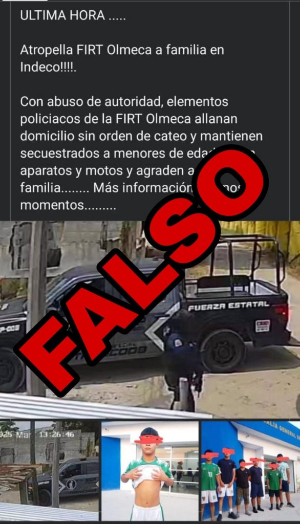 SARA AMADOR VERA / EL EDÉN MX La Secretaría de Seguridad y Protección Ciudadana (SSPC) desmiente categóricamente la información difundida en redes sociales respecto a que elementos de la Fuerza Interinstitucional de Reacción Táctica Olmeca hayan atropellado a familias o cometido actos de abuso de autoridad. A través de un comunicado, la dependencia estatal, señaló […]