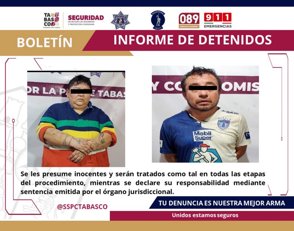 ABISAC MÁRQUEZ/ EL EDÉN MX En el marco de la Estrategia Nacional contra la Extorsión y acciones de contención del delito, elementos del Grupo Especial Tabscoob de la Secretaría de Seguridad y Protección Ciudadana (SSPC), en coordinación con la Fuerza Interinstitucional de Reacción Táctica (FIRT) Olmeca, logró la detención de dos personas por su probable […]