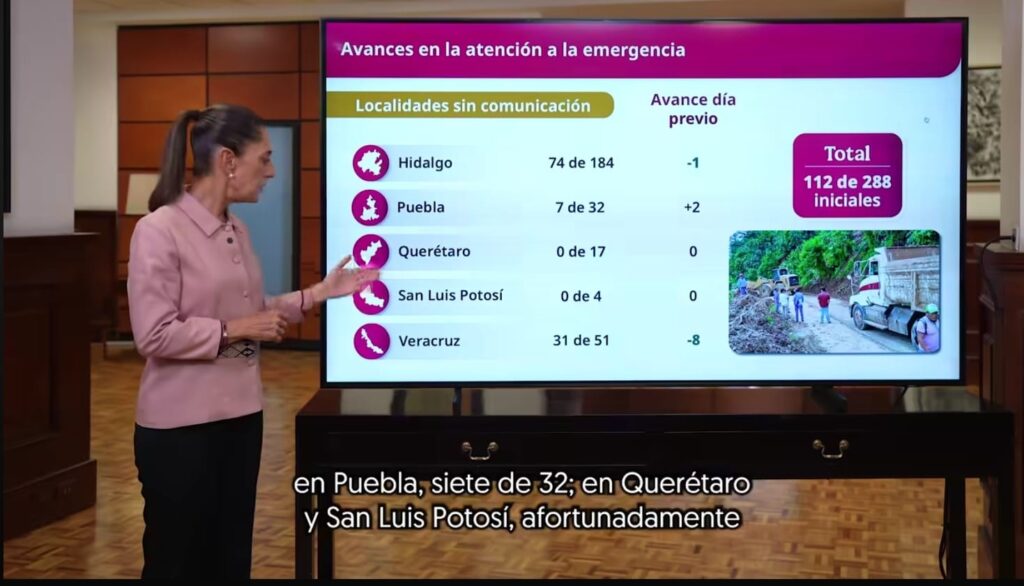 A través de sus redes sociales, la presidenta de México, Claudia Sheinbaum Pardo, afirmó que avanza la atención a la emergencia que se vive en cinco estados del país a consecuencia de las intensas lluvias registradas en los últimos días. En un video difundido en sus plataformas digitales, la mandataria precisó que las labores de […]