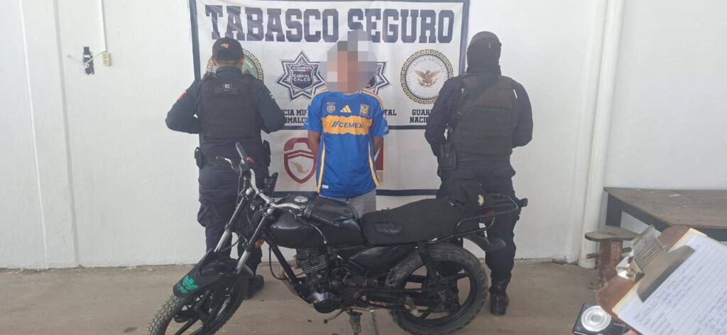 Elementos de la Policía de Comalcalco detuvieron en la ranchería Emiliano Zapata segunda sección a un masculino que se trasladaba a bordo de una motocicleta con reporte de robo. Durante un recorrido de vigilancia por la citada comunidad, observaron al sujeto que se encontraba jalando la moto –que no contaba con llave–, de color negro, […]