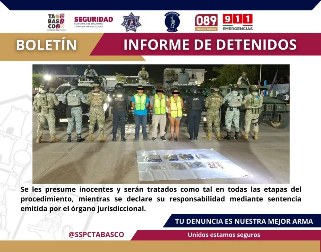 En recorridos de seguridad y vigilancia, la Secretaría de Seguridad y Protección Ciudadana en coordinación con la Fuerza Interinstitucional de Reacción Táctica (FIRT) Olmeca detuvieron a dos masculinos y una femenina como presuntos responsables por el delito contra la Ley General de Salud. Los hechos ocurrieron sobre calle principal La Selva, Nacajuca, donde detuvieron a […]