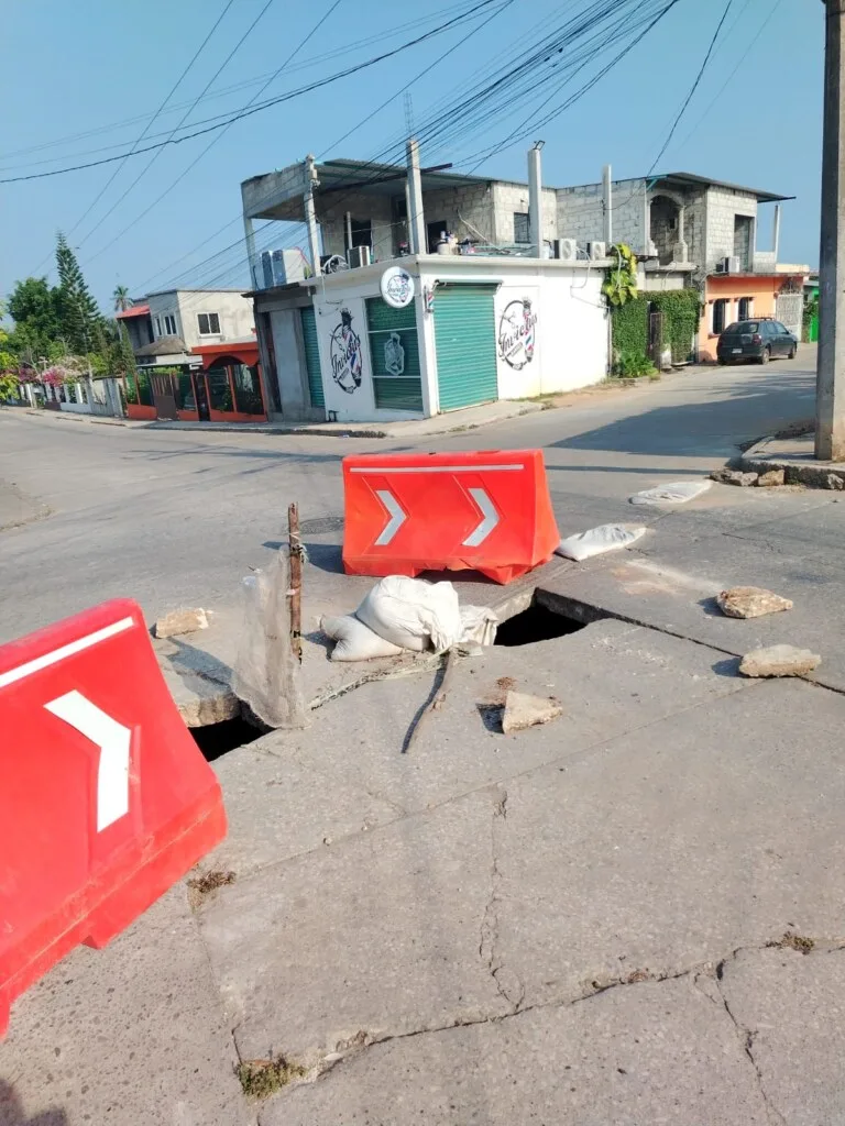 Socavón en Tamulté de las Sabanas cumple casi tres meses sin reparación; vecinos denuncian abandono y solo señalización preventiva