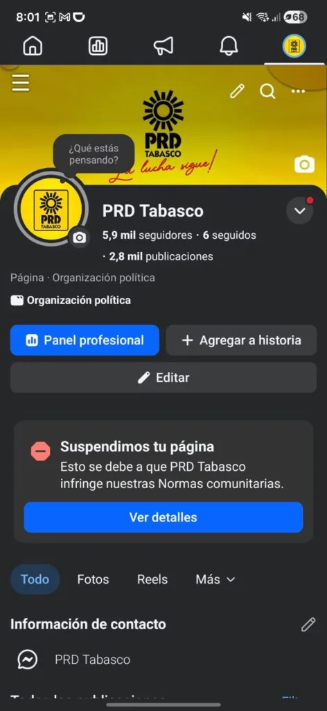 Tumban Facebook del PRD Tabasco; dirigencia acusa ataque de piratas informáticos para silenciarlos