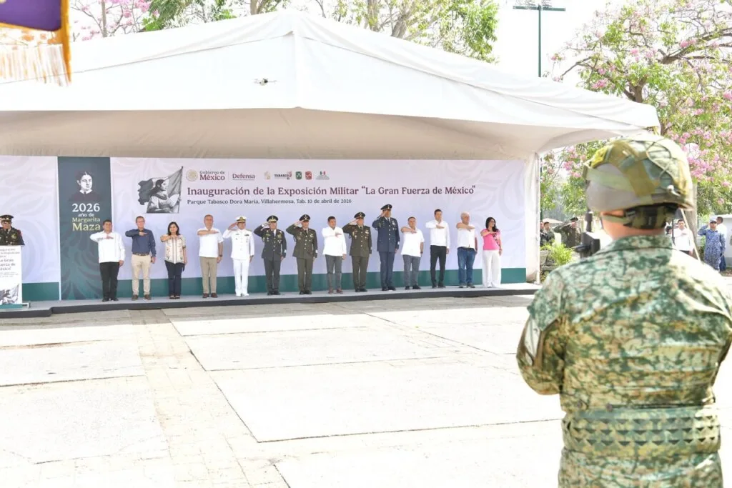 El gobernador Javier May Rodríguez junto al comandante de la VII Región Militar, Alejandro Vargas González, encabezó la inauguración de la exposición militar “La Gran Fuerza de México”, en cuyo marco reiteró el respeto y reconocimiento del pueblo y Gobierno de Tabasco a las fuerzas armadas y la Guardia Nacional (GN), instituciones, enfatizó, con las que se trabaja todos los días de manera coordinada por la seguridad, la paz y el bienestar del estado.