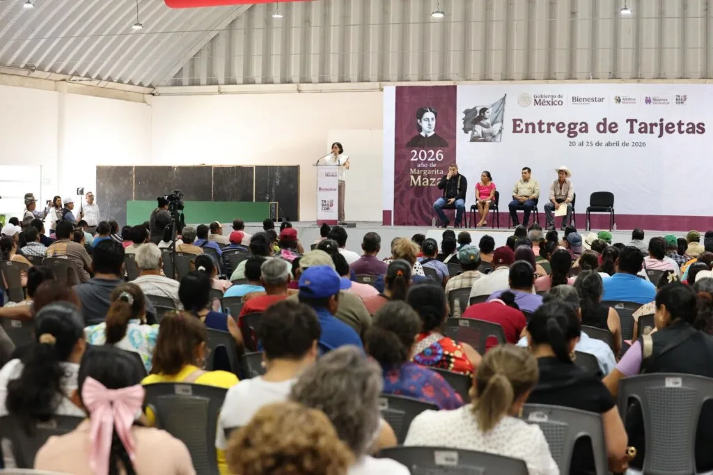 Ante cientos de beneficiarios, resaltó que la Pensión para el Bienestar que impulsa el Gobierno de México es un derecho ganado por su esfuerzo, su entrega y su aportación al desarrollo de sus familias y sus comunidades.