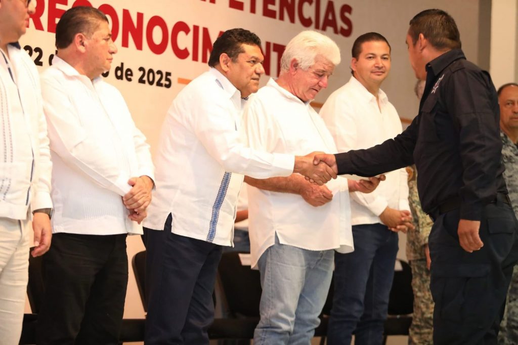 Por lo que esté día simbólicamente el elemento Tomas Alejandro Morales a nombre de sus 33 compañeros de la dirección de Seguridad Pública del Ayuntamiento de Paraíso, recibió de manos del Gobernador del Estado Javier May Rodriguez reconocimientos por conclusión de cursos de competencia básica