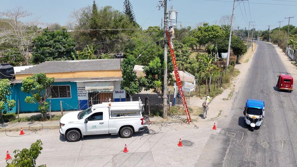 Es de mencionar que, desde este lunes 2 de junio, personal técnico de la CFE realiza trabajos de mantenimiento de transformadores, poda preventiva de árboles en líneas de alta tensión, limpieza de líneas eléctricas, evaluación técnica de equipos en calles de la zona, y el levantamiento y análisis de las condiciones actuales para planificar una intervención adecuada en la zona Yokot’an.