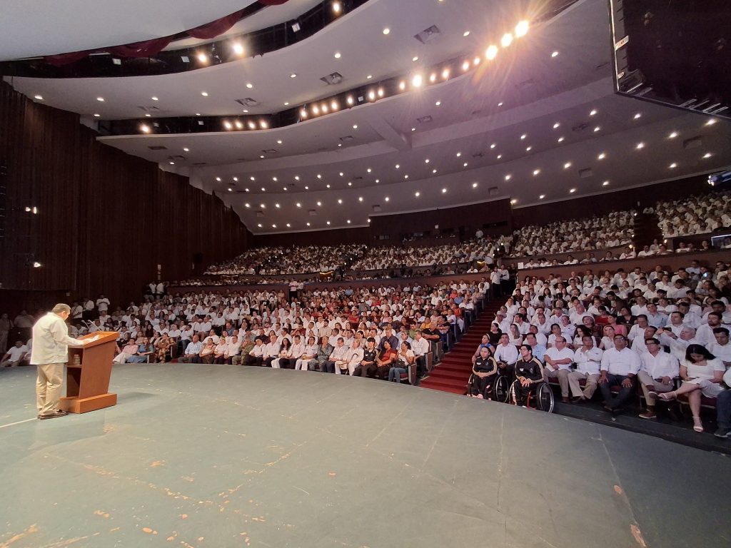 Teniendo como marco el Teatro Esperanza Iris, destacó que desde el arranque de su administración en octubre de 2024,, se ha trabajado sin descanso para responder a las necesidades del pueblo, con base en los principios del Humanismo Mexicano, guiado por la ética, la austeridad y la justicia social. En este sentido, señaló que cada acción emprendida tiene como eje central la dignidad humana y las causas históricas de las y los tabasqueños.