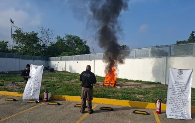 FGR Tabasco incinera narcóticos y destruye objetos vinculados con la delincuencia organizada