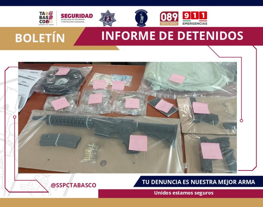 Tres hombres fueron detenidos por elementos de la Fuerza Interinstitucional de Reacción Táctica (FIRT) Olmeca en la ranchería Cumuapa 2da. Sección, en el municipio de Cunduacán, luego de que se les encontraran armas de fuego y varias dosis de presunta marihuana.