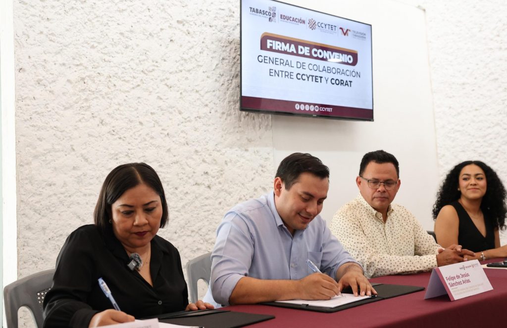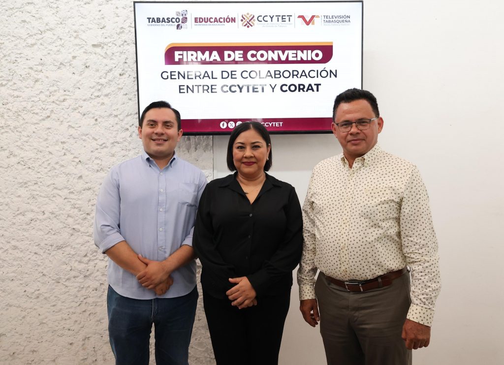 La tarde de este lunes, el Consejo de Ciencia y Tecnología de Tabasco (CCYTET) y la Comisión de Radio y Televisión de Tabasco (CORAT) firmaron un convenio general de colaboración, con el que se busca establecer las bases y mecanismos de cooperación entre ambas instituciones, con el fin de unir esfuerzos y recursos que fortalezcan la divulgación científica y tecnológica en el estado.