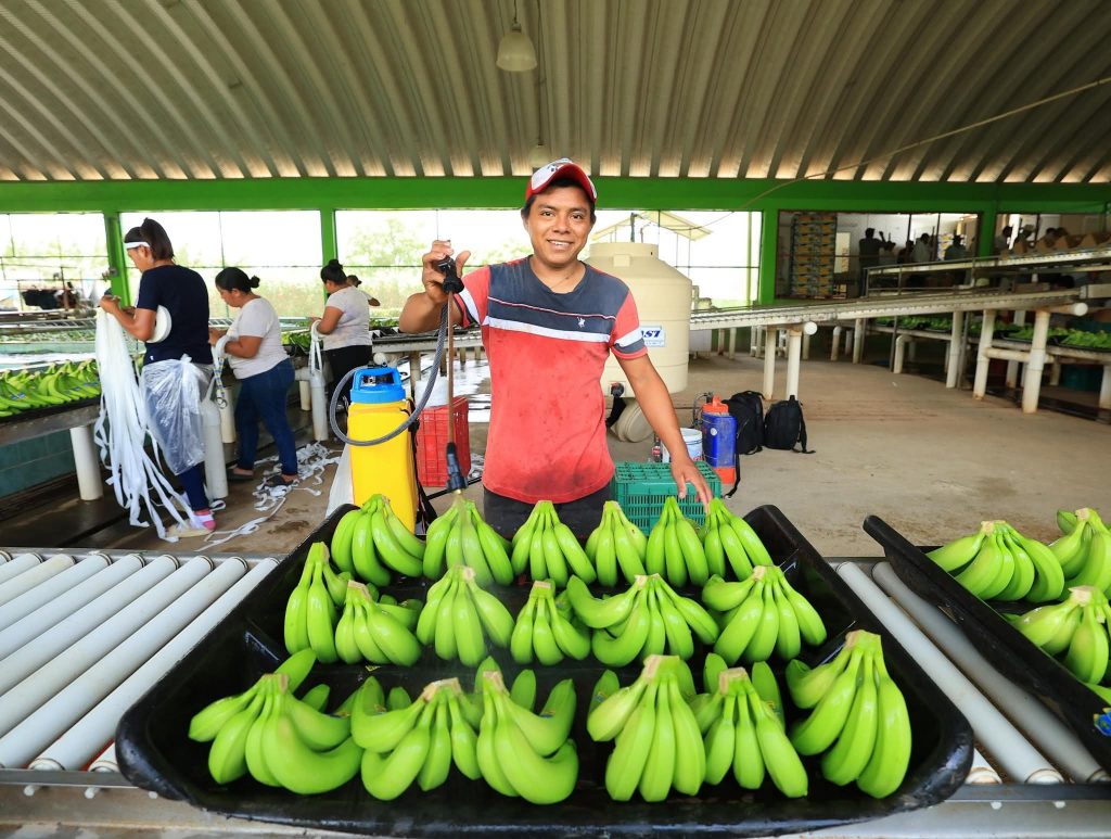 El gobernador del estado, Javier May Rodríguez, visitó el rancho Las Lilias, donde recorrió la planta empacadora de banano, un proyecto que fue recuperado durante su administración.
